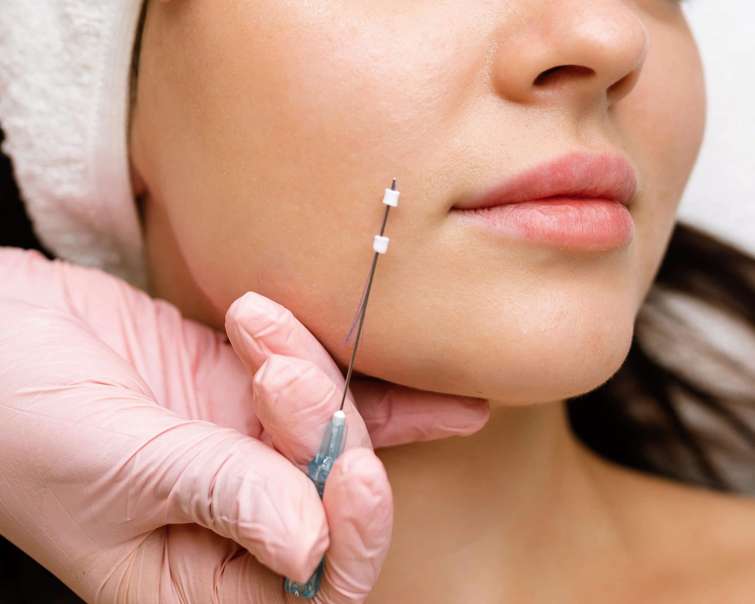 The tiny threads are gently placed beneath the skins' surface, By stimulating your body to naturally produce collagen around the threads themselves, a tightening effect is created, with the threads also becoming a soft structural support for the face. PDO threads are introduced into the skin in a mesh-like pattern; reinforcing and structurally supporting the skin from within.